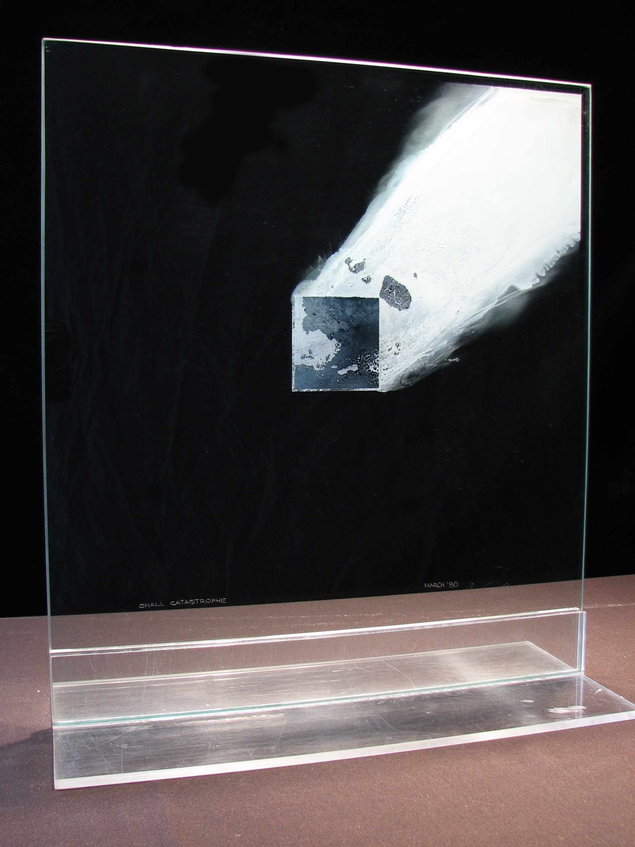 See “Small Catastrophe”, 18”x 16”x 1/4” plate glass, vitreous enamel glaze.